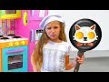 Niki and Leo love to pretend in the kitchen. Kids pretends to make breakfast for mom. They fried scrambled eggs and made a salad of fruits and vegetables.