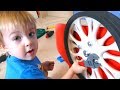 Niki sleeping on her bed. Child Leo bacame to sister. Girl and boy are playing an engineer to build a new red car bed for little kid.